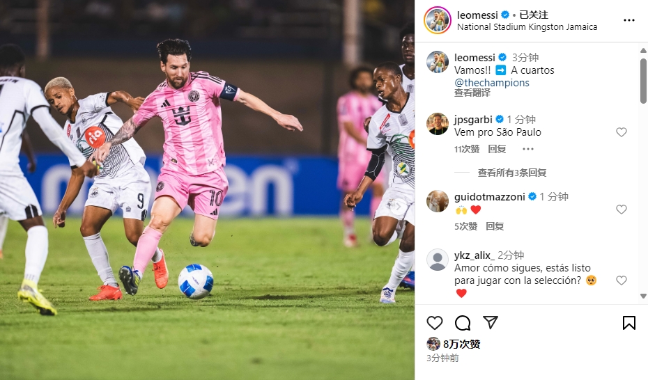 - 梅西更新ins:加油!!??進入中北美冠軍杯1/4決賽