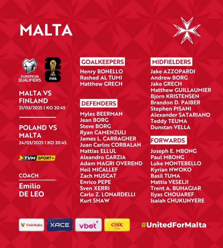馬耳他國家隊目前FIFA排名168位,本月他們將在世預賽中面對芬蘭、波蘭。