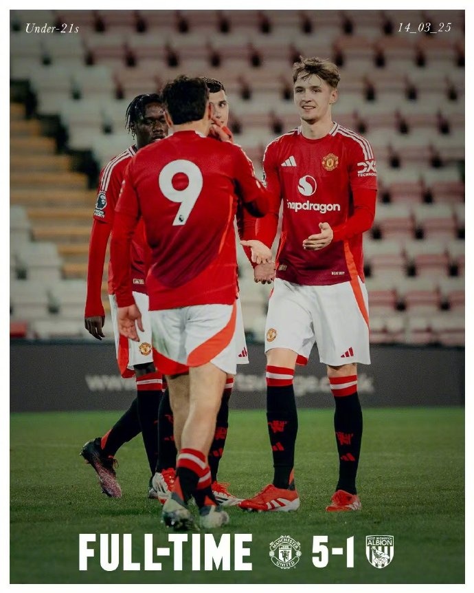 3月15日訊 在當地時間周五晚間進行的英超二級聯賽中,曼聯U21隊主場5-1大勝西布朗U21隊,位居積分榜第6位。