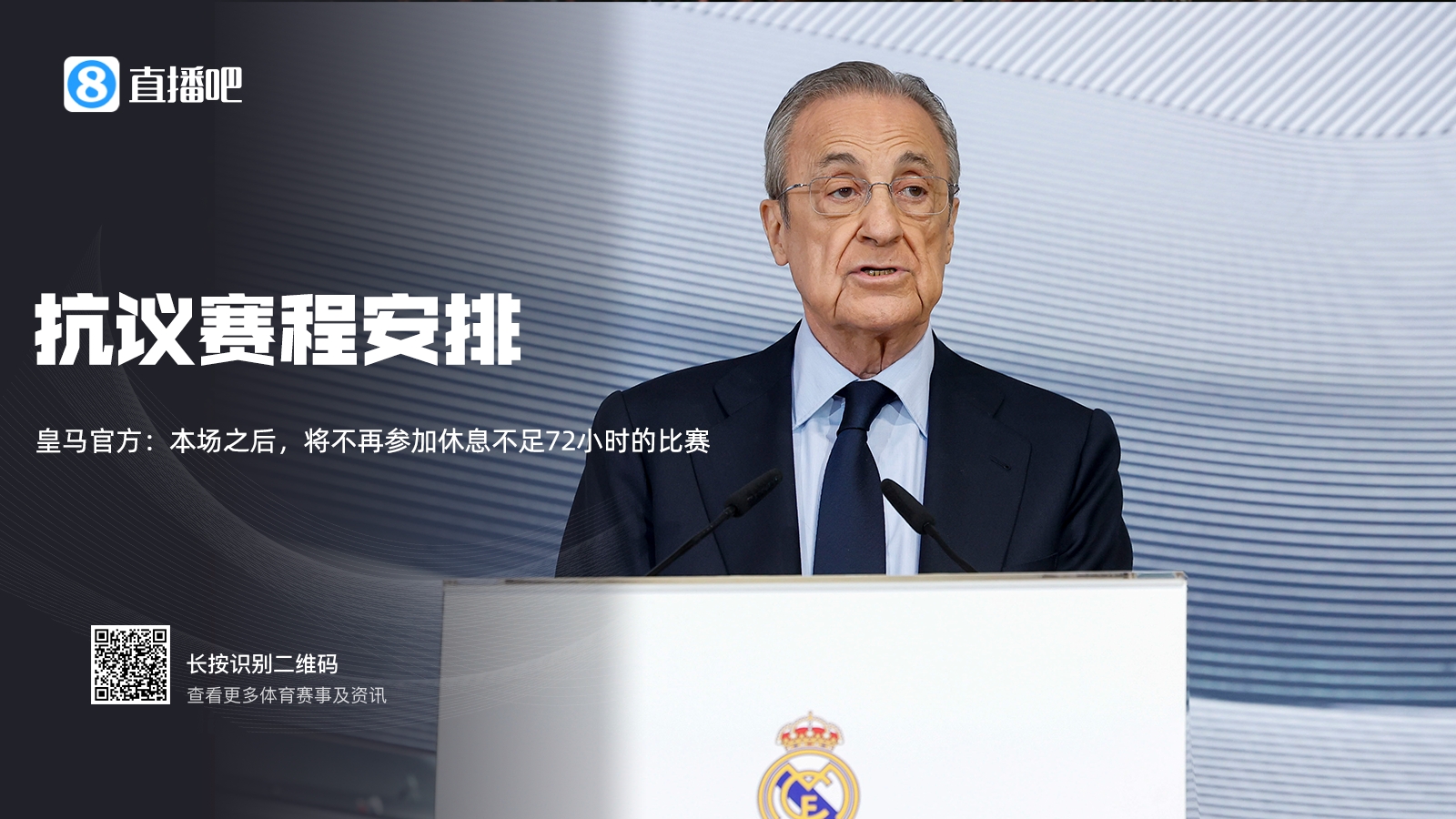 皇馬官方通過皇馬電視臺RMTV發(fā)布,皇馬將不再參加任何不符合國際足聯(lián)建議的、比賽休息時間不足72小時的比賽。