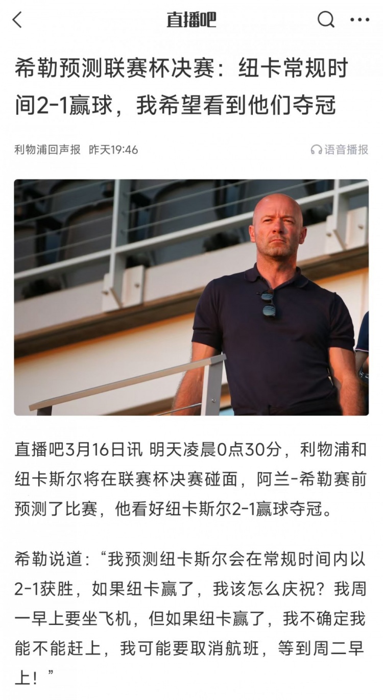 - 小嘴開了光!希勒賽前精準預測:紐卡常規時間2-1贏利物浦